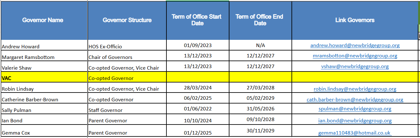 Full details of the New Bridge Multi Academy Trust’s governance structure are available here and explain how our robust system of accountability works.